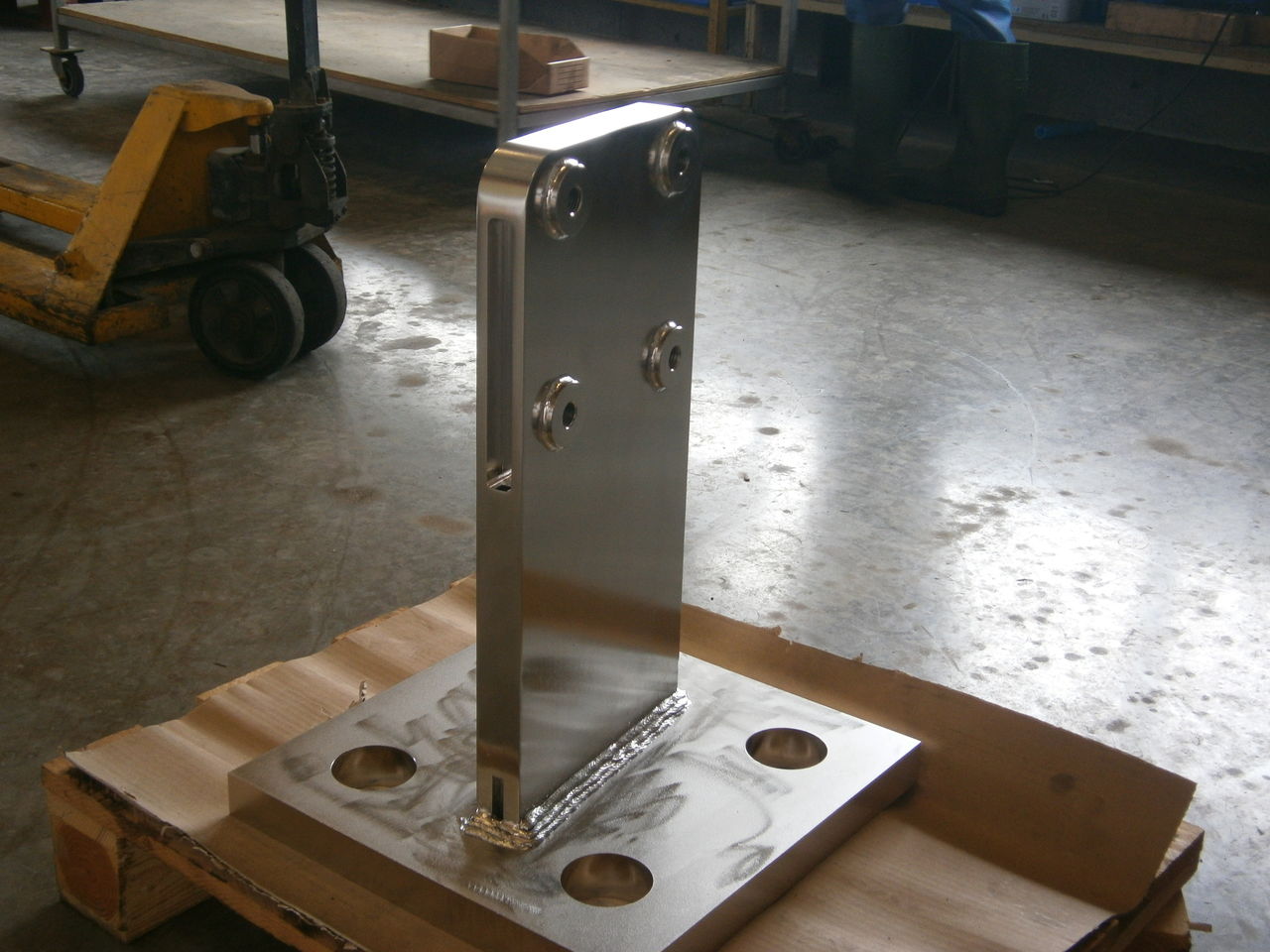 Il s'agit de plusieurs assemblages en tôle de 40mm soudées en angle multipasse. Pour la réalisation de ces pièces, plusieurs phases de brossage avec des grains différents sont réalisées dans notre atelier. Les pièces sont ensuite traitées par électropolissage afin d'obtenir un rendu poli brillant, validé par notre client.
